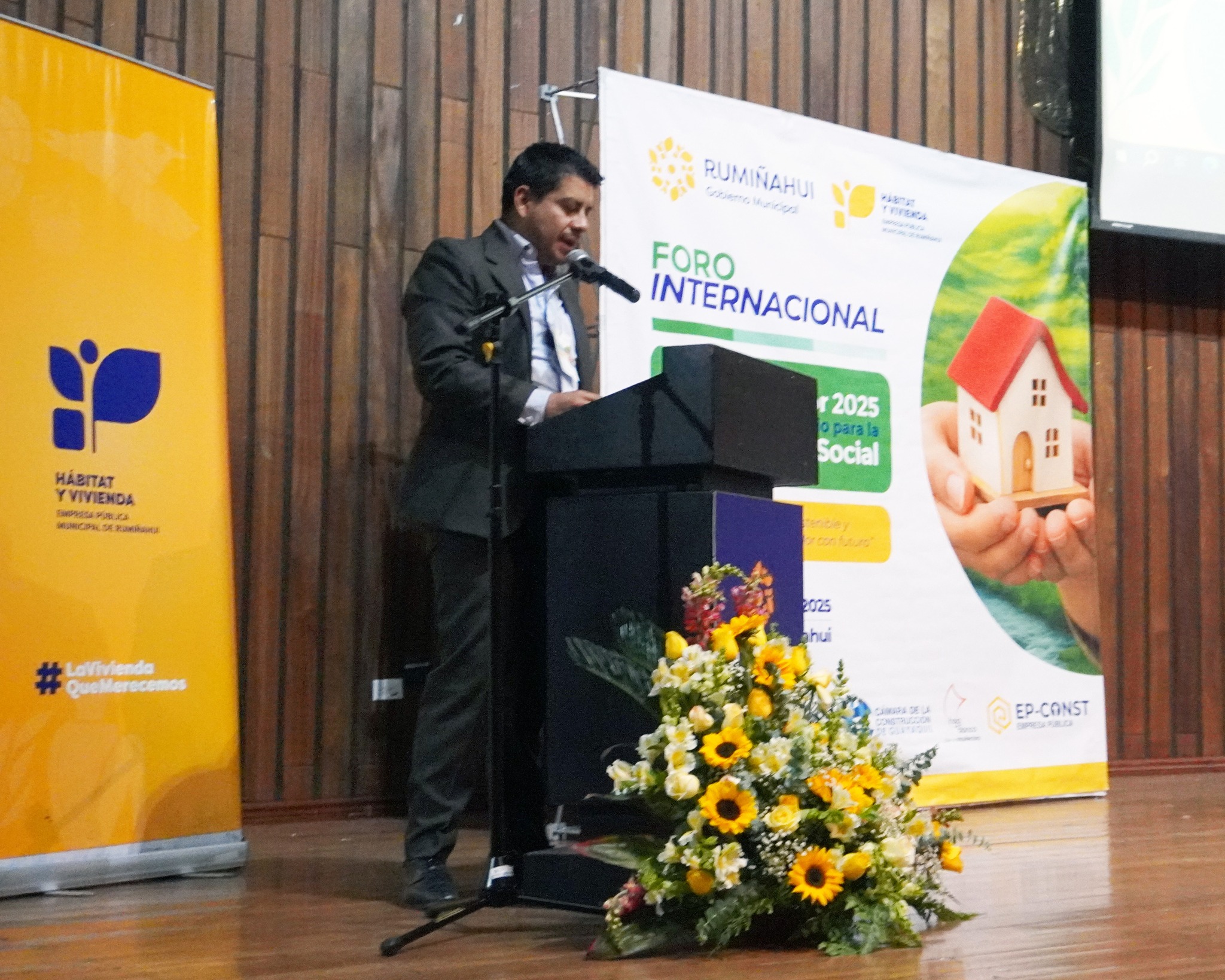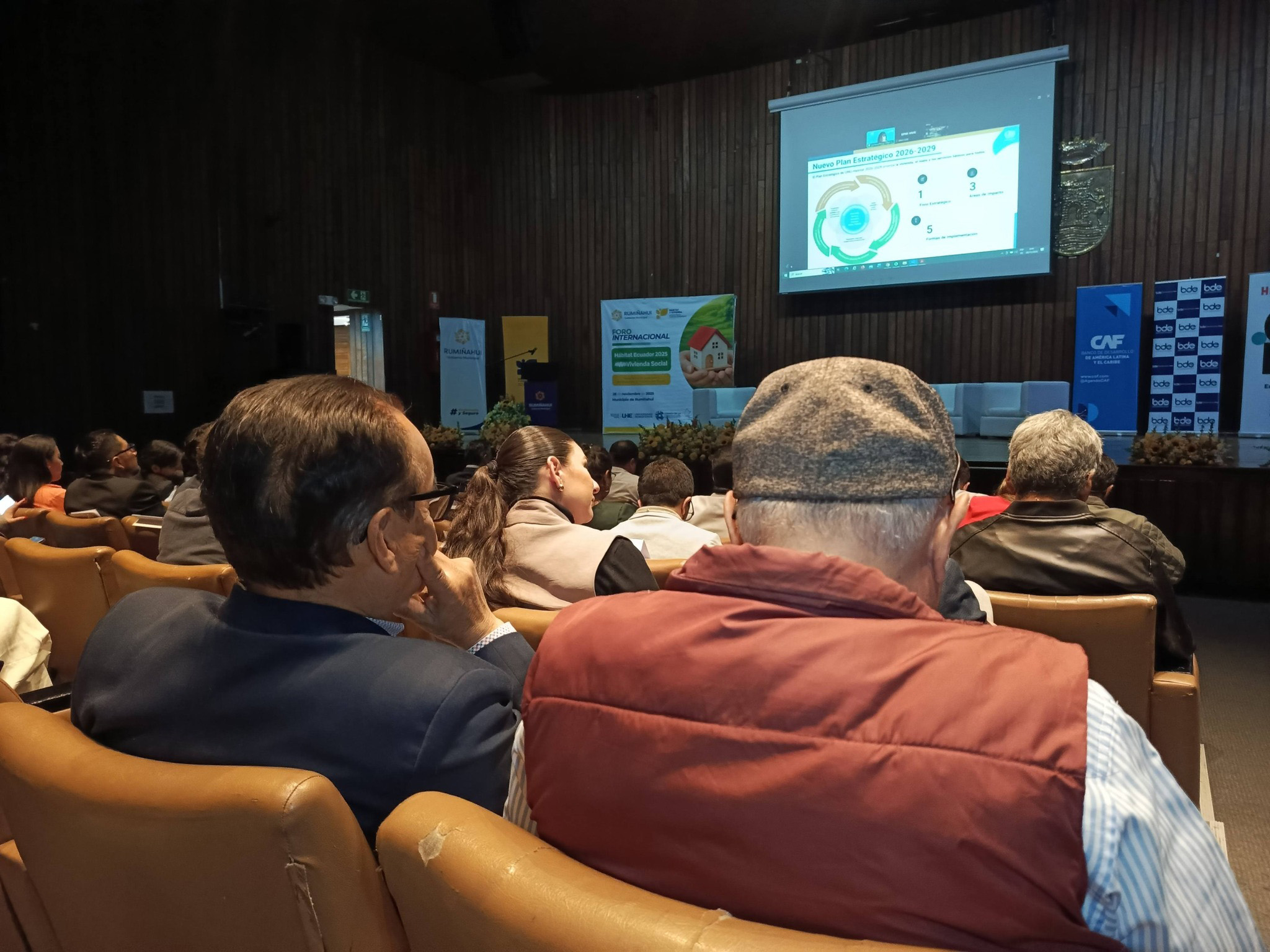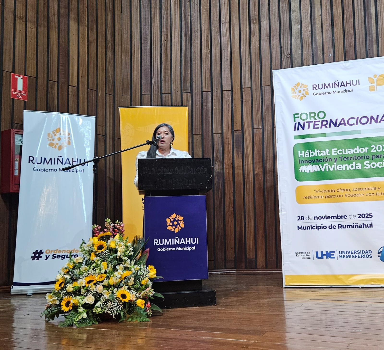El evento organizado por la Empresa Pública Municipal de Hábitat y Vivienda de Rumiñahui (EPMHVR), en colaboración con la Escuela de Educación Online de la Universidad Hemisferios, contó con la presencia de aliados estratégicos como ONU-Hábitat, Ministerio de la Producción del Perú, Cooperación Técnica Alemana -GIZ; CAF-Banco de Desarrollo de América Latina y el Caribe; Corporación CPTED; Banco de Desarrollo de Ecuador B.P.; Instituto Nacional de Patrimonio Cultural (INPC); Federación de Cámaras de la Construcción de Guayaquil; Colegio de Arquitectos de Ecuador; Asociación de Municipalidades Ecuatorianas y empresas públicas asociadas al hábitat y vivienda social.
